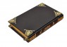 Французька складова палітурка ручної роботи виконана з комбінації натуральних шкір (шкіра «Robbat nero», шкіра «Robbat verde» виробництва італійської шкіряної фабрики «Carisma»). Обкладинка книги оформлена комбінацією рельєфного золотого та срібного тиснення з використанням фольги «Luxor 240». Обріз блоку вручну полірований та позолочений сусальним золотом.