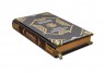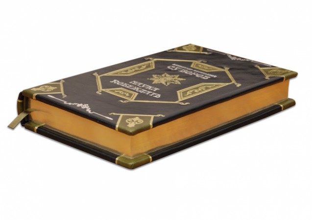 Французька складова палітурка ручної роботи виконана з комбінації натуральних шкір (шкіра «Robbat nero», шкіра «Robbat verde» виробництва італійської шкіряної фабрики «Carisma»). Обкладинка книги оформлена комбінацією рельєфного золотого та срібного тиснення з використанням фольги «Luxor 240». Обріз блоку вручну полірований та позолочений сусальним золотом.