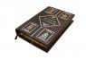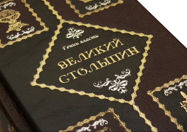 виробництва італійської шкіряної фабрики «Claudio»). Обкладинка книги оформлена комбінацією рельєфного золотого та срібного тиснення з використанням фольги «Luxor 240». Обріз блоку вручну полірований та позолочений сусальним золотом.