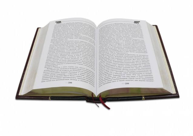виробництва італійської шкіряної фабрики «Claudio»). Обкладинка книги оформлена комбінацією рельєфного золотого та срібного тиснення з використанням фольги «Luxor 240». Обріз блоку вручну полірований та позолочений сусальним золотом.