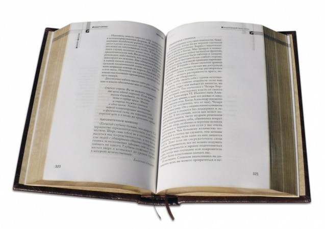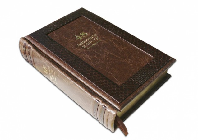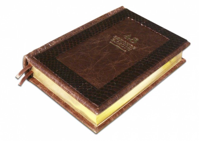 виробництва італійської шкіряної фабрики «Benericetti»). Обкладинка книги оформлена рельєфним золотим тисненням. Обріз блоку вручну полірований та позолочений сусальним золотом.