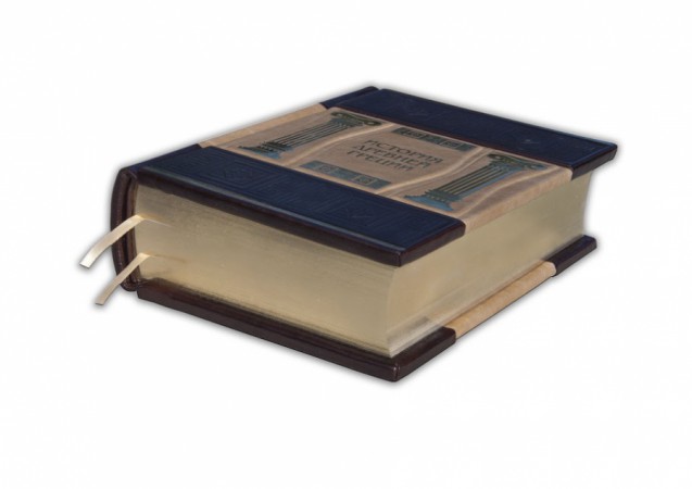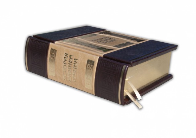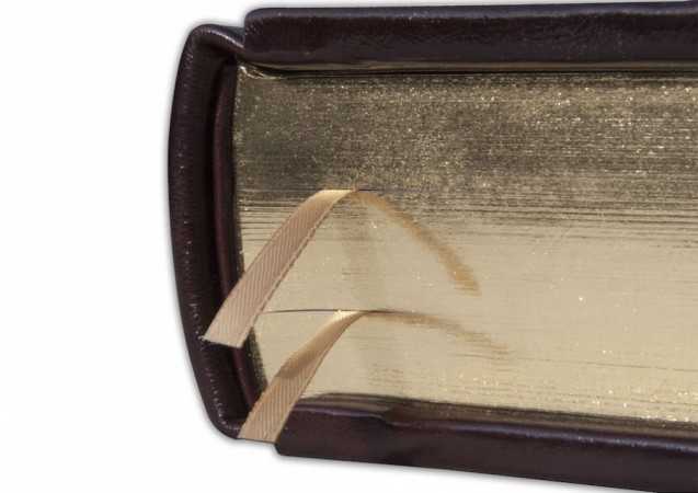 Parle» виробництва італійської шкіряної фабрики «Carisma»). Обкладинка книги оформлена багаторівневим тисненням: глибоким блінтовим та рельєфним золотим, з використанням фольги «Luxor 240». Обріз книги вручну полірований та позолочений сусальним золотом.