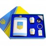 Прекрасний подарунок для чоловіків і хлопців, в даному наборі є фляга, 2 чарочки, лійка, і брелок, на всіх аксесуарах крім лійки є патріотичний орнамент. Оригінальний подарунок чоловікові, який можна придбати в Києві замовивши доставку по Києву чи Україні, також можна забрати самовивозом.