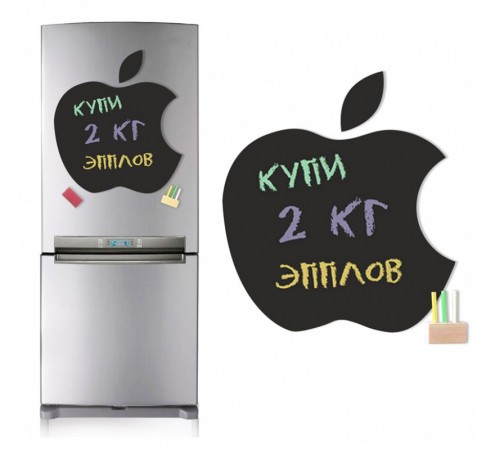 Прекрасный аксессуар, который поможет Вам стильно и с элегантностью передать необходимую информацию. В набор входит сама доска, набор мелков и губка. Доска выполнена в виде надкушенного яблока, что будет смотреться очень прикольно на Вашем холодильнике и точно привлечет внимание. Высокое качество изготовления позволит долгое время использовать ее по назначению.