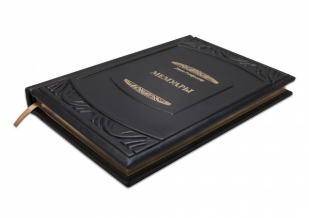 Французька складова палітурка ручної роботи виконана з натуральної шкіри «Buco nero» виробництва італійської шкіряної фабрики «Benericetti». Обкладинка книги оформлена об'ємними візерунками ручного тиснення, рельєфним золотим тисненням із використанням фольги