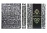 Французька складова палітурка ручної роботи виконана з комбінації натуральних шкір (шкіра «Robbat nero», шкіра «Argento dinosauro» виробництва італійської шкіряної фабрики «Claudio»). Обкладинка книги дворівнева, оформлена рельєфним золотим тисненням (фольга Luxor 240), вставками з плетеного шкіряного шпагату (колір Bronze), латунними холітенами, кількістю 12 шт. Обріз вручну полірований і позолочений (колір "Bronze").
