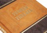 Французька складова палітурка ручної роботи виготовлена з комбінації натуральної замші та нубуку. Дворівнева обкладинка книги, виготовлена в авторській технології високого рельєфу, декорована комбінацією глибокого блінтового та рельєфного золотого тиснення, з використанням фольги «Luxor 240». Обріз блоку вручну полірований та позолочений сусальним золотом.
