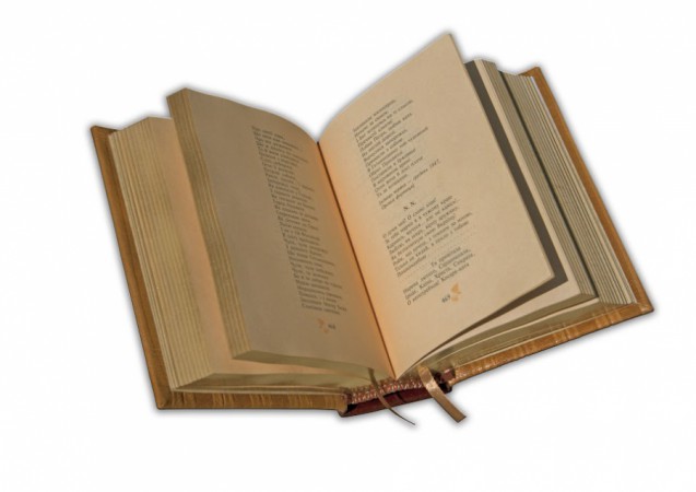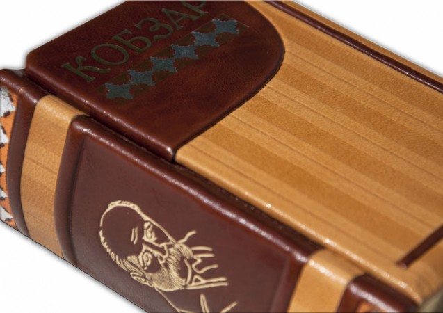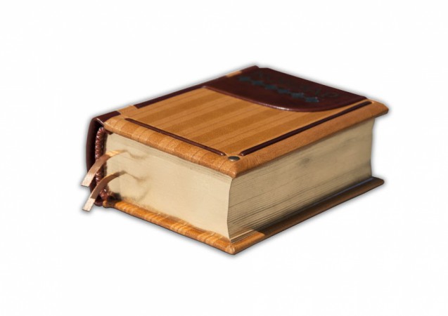 Французька складова палітурка ручної роботи виготовлена з комбінації натуральних шкір (шкіра «Spogliare», шкіра «Robbate cognac» виробництва італійської шкіряної фабрики «Claudio»). Обкладинка книги оформлена багаторівневим тисненням: рельєфним золотим та кольоровим, глибоким блінтовим. Обріз блоку вручну полірований та позолочений сусальним золотом.