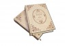 фабрики «Carisma». Обкладинка книг декорована об'ємними візерунками ручного тиснення, рельєфним бронзовим тисненням (використано фольгу кольору «Marrone»). Обрізи блоків вручну поліровані та пофарбовані.