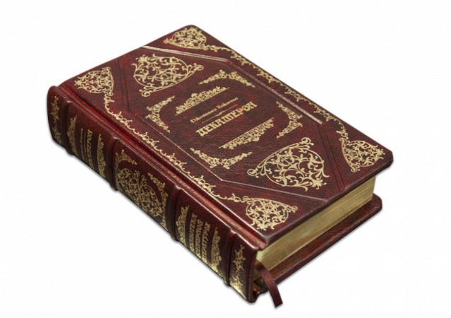 фабрики «Carisma». Обкладинка книги декорована комбінацією рельєфного блінтового та золотого тиснення (використано фольгу «Luxor 240»). Обріз книги вручну полірований та позолочений сусальним золотом.