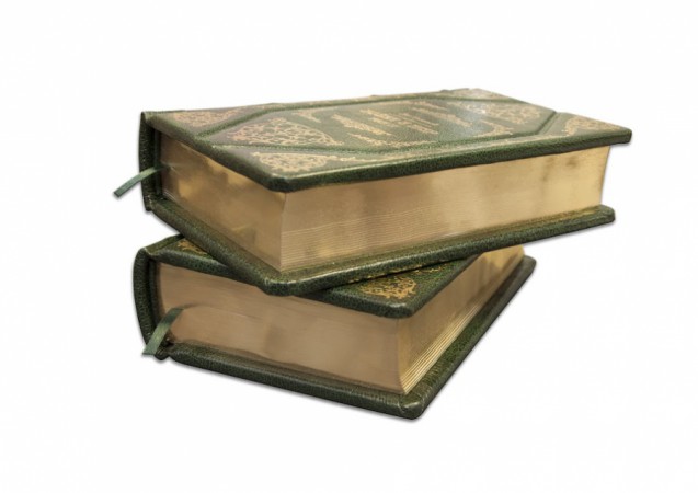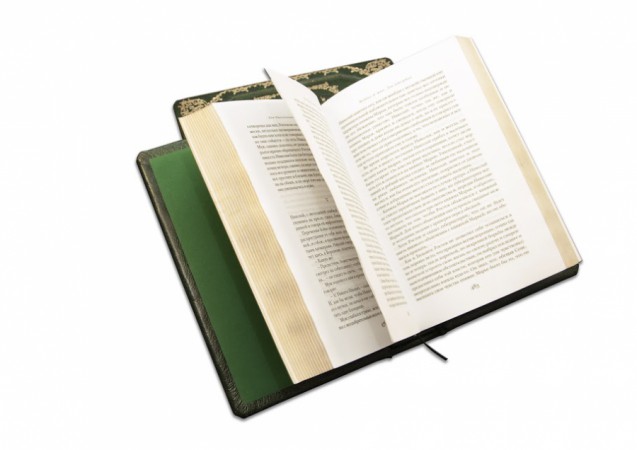 фабрики «Carisma». Обкладинка книги декорована комбінацією рельєфного блінтового та золотого тиснення (використано фольгу «Luxor 240»). Обріз книги вручну полірований та позолочений сусальним золотом.
