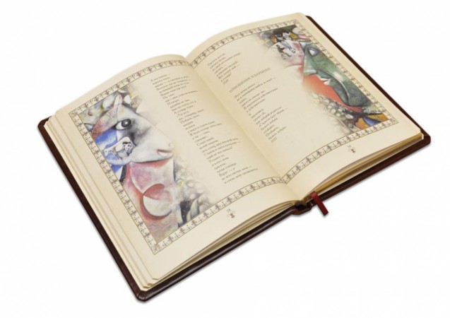 фабрики «Carisma». Обкладинка книги декорована комбінацією рельєфного блінтового та золотого тиснення (використано фольгу «Luxor 240»). Обріз книги вручну полірований та позолочений сусальним золотом.