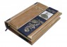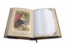 Французька складова палітурка ручної роботи виготовлена з комбінації натуральної шкіри (шкіра Robbat cappuccino, шкіра Marmo blue виробництва італійської фабрики Carisma). Обкладинка книги дворівнева, прикрашена вставкою з полотна, комбінацією багаторівневого тиснення: глибокого золотого блінтового і рельєфного, з використанням фольги «Luxor 240». Обріз книги вручну полірований та позолочений сусальним золотом.