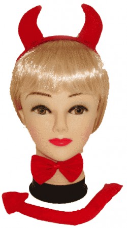 Набор состоящий из хвоста, бабочки и рожек поможет Вам создать образ чертовки, можно образу придать либо более устрашающего вида, что может гармонично смотреться, к примеру, во время празднования ночи которая предшествует Дню всех святых. Артикул: 303217 КП.
