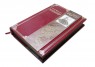 Французька складова палітурка ручної роботи виготовлена з комбінації натуральної шкіри (шкіра Robbat rosso, шкіра Rugosità azzurro виробництва італійської фабрики Carisma). Обкладинка книги дворівнева, прикрашена вставкою з полотна, комбінацією багаторівневого тиснення: глибокого блінтового та рельєфного золота з використанням фольги «Luxor 240». Обріз книги вручну полірований та позолочений сусальним золотом.