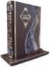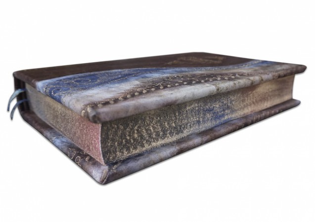 фольги «Luxor 240». Обріз блоку вручну полірований та пофарбований. Підставка виконана в такому самому стилі, що і книга.