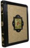Французька складова палітурка ручної роботи виконана з комбінації натуральних шкір (шкіра овчина «Saramello», шкіра «Plonge Brown» виробництва італійської шкіряної фабрики «Claudio»). Обкладинка книги оформлена в унікальній авторській техніці "об'ємні візерунки ручного тиснення". Інкрустована камінням циркон, діамантового огранювання, виробництва компанії Swarovski: колір шампань, діаметр 5 мм.,