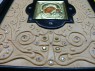 кількість 14 шт.; прозорі, діаметр 5 мм., кількість 4 шт., діаметр 3 мм, кількість 66 шт., діаметр 1,5 мм., 2 шт., іконами «Богоматір» 2 шт. Обріз книги вручну полірований та позолочений сусальним золотом.