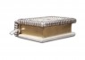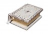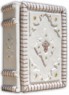 Французька обкладинка ручної роботи виконана з натуральної шкіри теляти «Latte», виробництва італійської шкіряної фабрики «Carisma». Обкладинка книги оформлена об'ємними візерунками ручного тиснення, плетінням тасьмою, інкрустацією камінням циркон діамантового огранювання (прозорий, 3 мм., вищий сорт, виробництва компанії «Signity»), кількістю 10 шт., камінням циркон (колір аметист, 5 мм., вищий , Виробництва компанії «Signity»), кількістю 5 шт., Срібним хрестом (925 проба, інкрустація цирконом, вага 2,1 г.). Обріз книги вручну полірований та позолочений сусальним золотом.