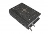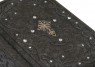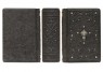 Французька складова палітурка ручної роботи виконана з натуральної шкіри теляти «Lazuli di granito» виробництва італійської шкіряної фабрики «Motta Alfredo». Обкладинка книги оформлена об'ємними візерунками ручного тиснення, інкрустована камінням циркон діамантового огранювання (вищий сорт, виробництва компанії «Signity»), діаметром 5 мм. - Кількість 8 шт., Діаметром 3 мм. - Кількість 22 шт., Срібним хрестом 925 проби, вагою 2,81 гр. Обріз блоку вручну полірований і срібний сусальним сріблом.