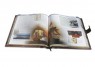 Авторський унікальний дизайн у стилі старовинних каравел. Обкладинка книги вручну виготовлена за традиціями французької складової палітурки. Незвичайний стиль комплекту підкреслено поєднанням двох типів натуральної шкіри («Marone Zegna» та «Jango» виробництва італійської шкіряної фабрики «Carisma») та репродукцією картини на полотні. Двохрівнева обкладинка оформлена рельєфним золотим тисненням, холітенами кольору «Антик» та закривається на декоративний замок. Обріз блоку вручну полірований та позолочений сусальним золотом. Форзац цільний на полотні з репродукціями картин морських баталій. Шкіряний каптал та шовкова стрічка-лясе. Образ книги завершує шкіряна підставка у тому поєднанні матеріалів, як і книга. У комплекті йде оксамитовий чохол, футляр подарунків, іменний сертифікат.