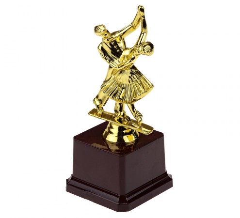 Перед Вами є чудовий кубок для нагородження в офіційній або дружній обстановці. Кубок зображує танцюючу пару в золотому кольорі, і все це розташоване на спеціальній підставці. Завдяки такому аксесуару можна не хвилюватися про те, чим нагородити конкурс танців.