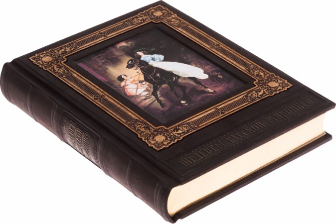 Оформлення: тиснення по шкірі, дерев'яна рамка з художнім гравіюванням, фотодрук на полотні.