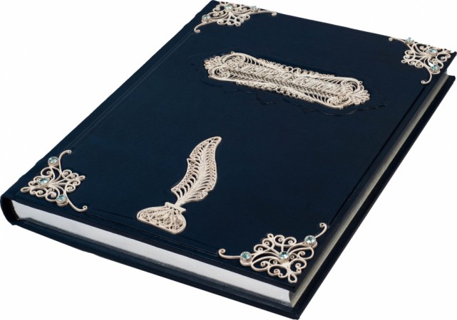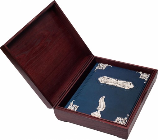 - Оформлення: філігрань ручної роботи - покрита сріблом, художнє лиття покрите сріблом, топази, шкіряна обкладинка, ручна робота, тристоронній срібний обріз, книга упакована в шкатулку ручної роботи з цінних порід дерева,