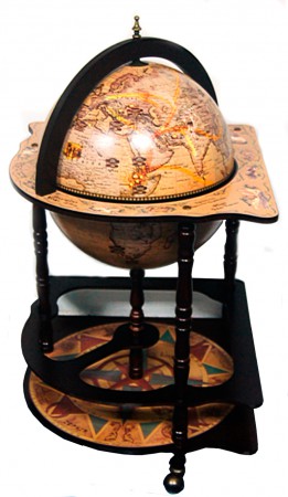 Прекрасний глобус бар, виготовлений таким чином, що його дуже зручно розміщувати в кутку кімнати, але ця умова не обов'язкова, так як у глобус бару зручне компонування і він органічно виглядатиме де б ви його не використовували, ніжні кольори декору підійдуть практично до будь-якого інтер'єру.