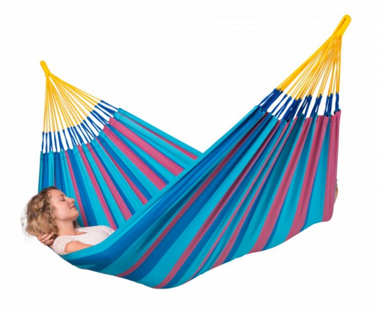 Безліч міцних канатів, що утримують сукно, перешкоджають його згортанню та розтягуванню в процесі відпочинку. Щільні відкриті петлі дозволяють всього за пару хвилин встановити гамак і також легко його прибрати. Модель відмінно підходить для прання машини – тканина не косматиться і не розтягується, швидко висихає і зберігає свою яскравість.