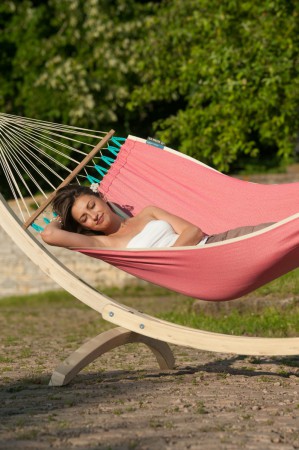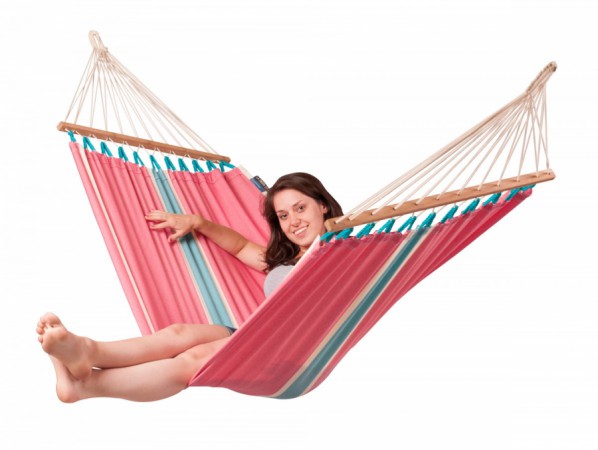 Барвистий та комфортний одномісний гамак La Siesta. Найкращі матеріали, погодостійкий HamacTex® та поперечна планка із бамбука гарантія тривалої служби. Особлива техніка плетіння забезпечить особливий затишок. Додатковий комфорт внаслідок великої кількості підвісних канатів.