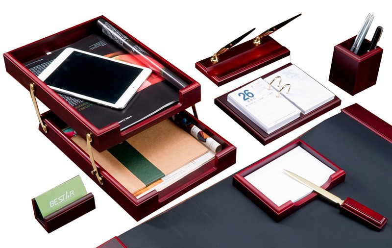 Якісний настільний набір виготовлений з натуральних матеріалів за сучасними технологіями, має високий ступінь зносостійкості, завдяки чому презентабельний зовнішній вигляд буде зберігатися протягом дуже тривалого періоду експлуатації. Гідний подарунок для керівника чи близької людини.