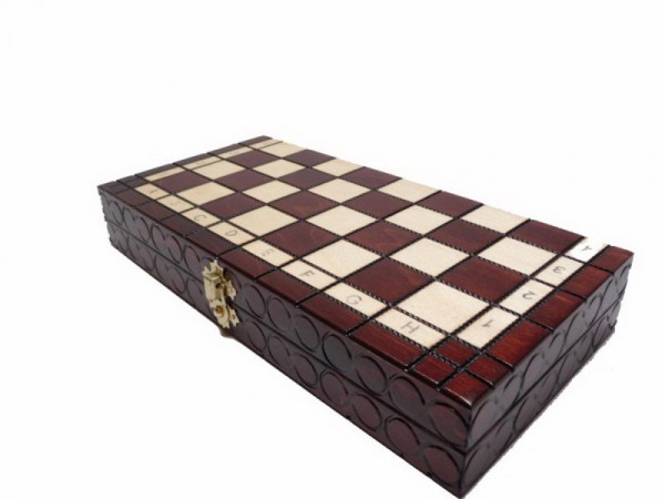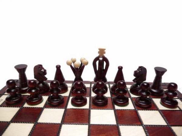 Шахи «Королівські малі» відрізняються компактністю та акуратністю виконання. Для виготовлення використовуються лише екологічно чисті матеріали. Невелика дошка розміром 30 х 30 см прикрашена елементами випалювання по дереву, а також розбивка дошки на клітини визначається випаленими линями. Фігури, при своїх невеликих розмірах, мають презентабельний вигляд, і в поєднанні з дошкою виходить приваблива картина, яка тішить око. А грати такими шахами ще приємніше, ніж дивитися. Зібралися в дорогу? І не хочете нудьгувати? Візьміть із собою шахи, і час пройде швидко та з користю.