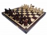 Шахи Королівські великі приваблюють своїм виглядом. Дерев'яні фігури, форма яких досить незвичайна і цікава, можна акуратно укласти всередині дошки в спеціальні осередки, тим самим забезпечити їх збереження від пошкоджень. Кожна з фігур має на основі оксамитову тканину для кращого ковзання по дошці. Дошка розміром 44х44 см також виготовлена з дерева з елементами випалювання, саме елементи випалювання надають дошці привабливості. Якість відповідає європейським стандартам. Купивши такі шахи, Ваша улюблена гра набуде нових фарб та відтінків. Головне пам'ятати, що на шахівниці головна фігура не король, а Ви.