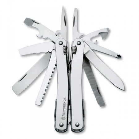Мультитул Swiss Tool Spirit від бренду Victorinox візуально нагадує пасатижі з ручками-лінійками. Але насправді ці ручки служать піхвами для великої кількості інструментів: великого леза, відкривалок, пили по дереву, напилка, ножівки по металу, викруток та багато іншого.