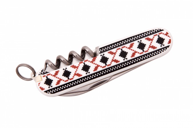 Новинка 2015 року. Швейцарський армійський кишеньковий ніж Victorinox Waiter є найменшим, зручним та недорогим ножем. Він містить необхідний мінімум інструментів, включаючи штопор, яким можна в будь-який момент відкрити пляшку вашого улюбленого напою. Ця модель є спеціальним лімітованим випуском, присвяченим національній та етнічній символіці України. На рукоять цієї моделі нанесено тризуб - герб України, сама рукоять покрита характерним для України візерунком вишивки. Ніж виготовлений із високоякісної нержавіючої сталі. Рукоятка виконана з глянсового нейлону.