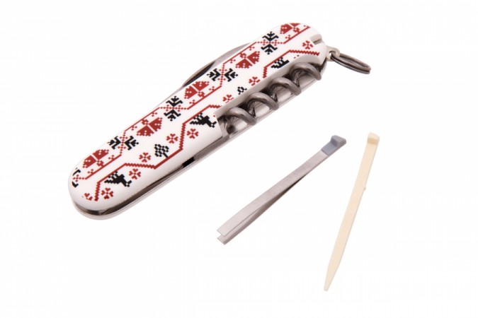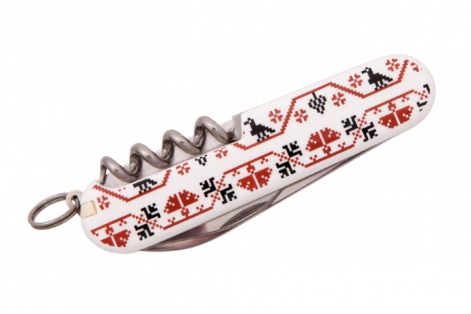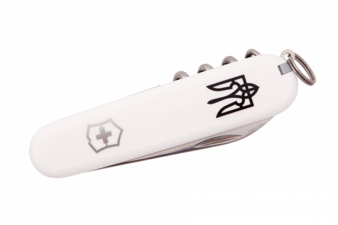 Новинка 2015 року. Швейцарський армійський кишеньковий ніж Victorinox Waiter є найменшим, зручним та недорогим ножем. Він містить необхідний мінімум інструментів, включаючи штопор, яким можна в будь-який момент відкрити пляшку вашого улюбленого напою. Ця модель є спеціальним лімітованим випуском, присвяченим національній та етнічній символіці України. На рукоять цієї моделі нанесено тризуб - герб України, сама рукоять покрита характерним для України візерунком вишивки. Ніж виготовлений із високоякісної нержавіючої сталі. Рукоятка виконана з глянсового нейлону.