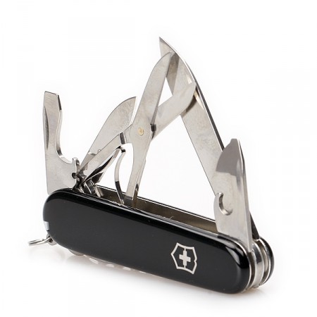 Швейцарський кишеньковий армійський ніж Victorinox Climber. Ідеальний для любителів активного відпочинку. Легка, компактна та зручна модель з легкістю ляже вам у кишеню. Крім того, ніж Victorinox дуже практичний і містить усі основні інструменти для повсякденного життя. Ніж виготовлений із високоякісної нержавіючої сталі. Рукоятка виконана з напівпрозорого чорного глянсового нейлону з логотипом.