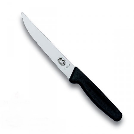 Классическая, но при этом невероятно острая модель кухонного ножа для нарезки от швейцарского бренда Victorinox. Данный нож удобен в использовании и лёгок при чистке. Длина лезвия представлена в различных конфигурациях, в зависимости от нужд пользователя: 12 см., 15 см. и 18 см. Оснащён удобно сидящей в руке и красивой рукоятью из черного матового полипропилена. Клинок выполнен из высококачественной нержавеющей стали. Нож упакован в пластиковый чехол с логотипом Victorinox.