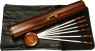 6 якісних шампурів виготовлені з нержавіючої сталі, мають дерев'яні ручки, у комплекті також йде дерев'яний тубус для зручності зберігання та транспортування. Розміри: 9х65х15 см.