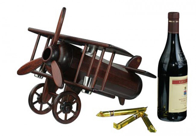Найкращий подарунок для льотчика! Міні бар не займає багато місця, при цьому є відмінним, функціональним апаратом, який Вам допоможе з легкістю здивувати і розвеселити гостей. Ємності, що містяться в мінібарі "Літак": вино (0,75 л), коньяк, віскі, горілка і т.д. (0,5 л). Розміри підставки для вина: H – 240 mm, D – 400 mm