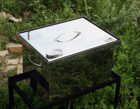 Нержавіюча сталь – матеріал, який має високу корозійну стійкість, тому його широко використовують у медицині та промисловості. Коптильня з даного матеріалу прослужить набагато довше і його можна використовувати в умовах з підвищеною вологістю. Цілісна конструкція та спеціальна кришка з гідрозатвором забезпечують повну герметичність ємності та високу якість копчення.