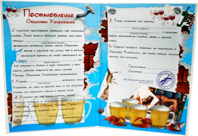 Відгуки до Диплом Постанова товариства холостяків
