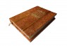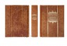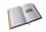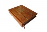 Французька складова оправа ручної роботи виконана з натуральної шкіри «Argilla rossa», виробництва італійської фабрики «Carisma». Обкладинка книги дворівнева, оздоблена глибоким блінтовим та рельєфним золотим тисненням, з використанням фольги «Luxor 240». Обріз виконано в унікальній техніці «Хамелеон», з використанням сусального золота.