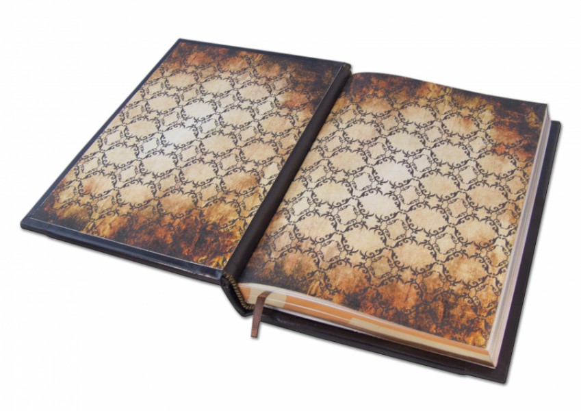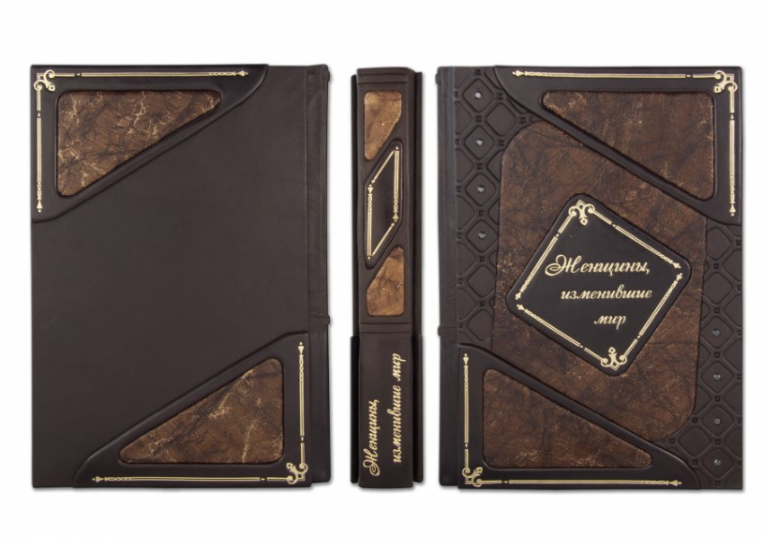 Французька складова палітурка ручної роботи виконана з комбінації натуральних шкір (шкіра теля «Maronne Zegna», шкіра маррокен «Patina agata», шкіра «Robbat maronne» виробництва італійської шкіряної фабрики «Benericetti»).