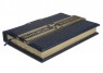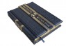 Французька складова палітурка ручної роботи виконана з комбінації натуральних шкір (шкіра теля «Robbat Blue», шкіра «Livido» виробництва італійської шкіряної фабрики «Carisma»). Обкладинка книги оформлена комбінацією багаторівневого об'ємного тиснення: рельєфного золотого з використанням фольги «Luxor 240» та глибокого блінтового. Обріз вручну полірований і позолочений сусальним золотом.