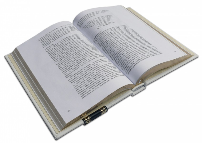Французька складова палітурка ручної роботи виконана з комбінації натуральних шкір (шкіра теля «Robbat Parle», шкіра «Robbat Nero» виробництва італійської шкіряної фабрики Carisma»). Обкладинка книги оформлена комбінацією багаторівневого об'ємного тиснення: рельєфного золотого з використанням фольги «Luxor 240» та глибокого блінтового. Обріз вручну полірований і позолочений сусальним золотом.