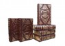 Французька цільношкіряна палітурка ручної роботи виконана з натуральної шкіри «Robbat wisky» виробництва італійської шкіряної фабрики «Carisma». Обкладинка книг декорована комбінацією рельєфного блінтового та золотого тиснення (використано фольгу «Luxor 240»). Обріз книг вручну полірований і позолочений сусальним золотом.