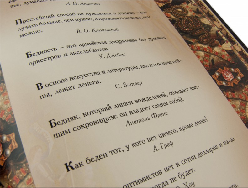 У цій розкішній збірці зібрано воєдино дорогоцінну частину інтелектуальної спадщини людства - афоризми, мудрі думки, зразки витонченої літератури, сакральні заповіді, перлини філософських трактатів, близькі до серця віршовані форми.