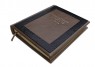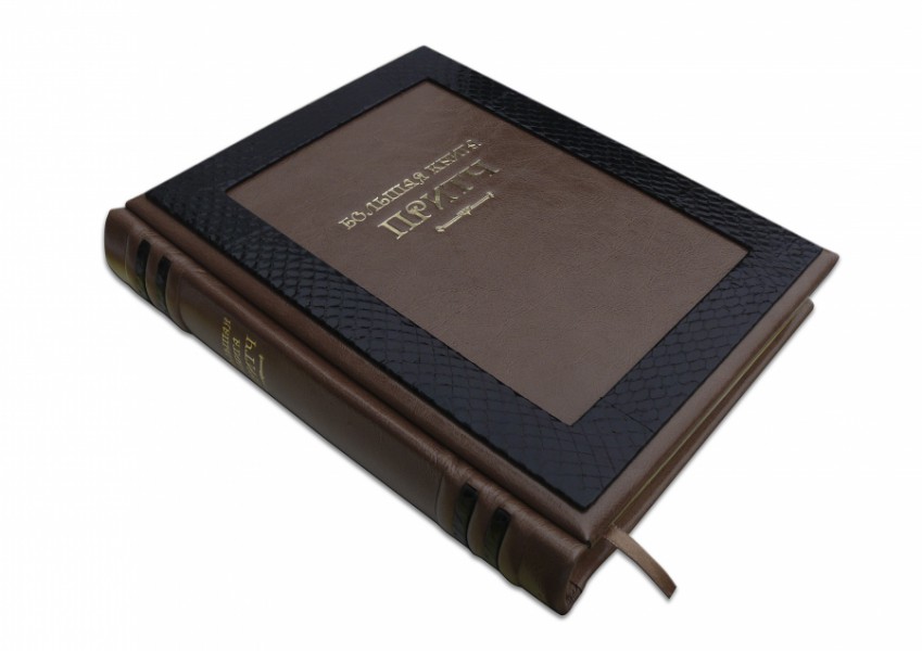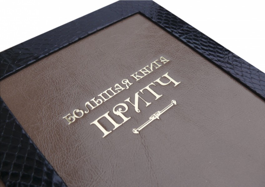 Французька складова палітурка ручної роботи виготовлена з комбінації натуральної шкіри (шкіра «Robbat cappuchino», шкіра морської змії виробництва італійської шкіряної фабрики «Benericetti»). Обкладинка книги оформлена рельєфним золотим тисненням. Обріз блоку вручну полірований та позолочений сусальним золотом.